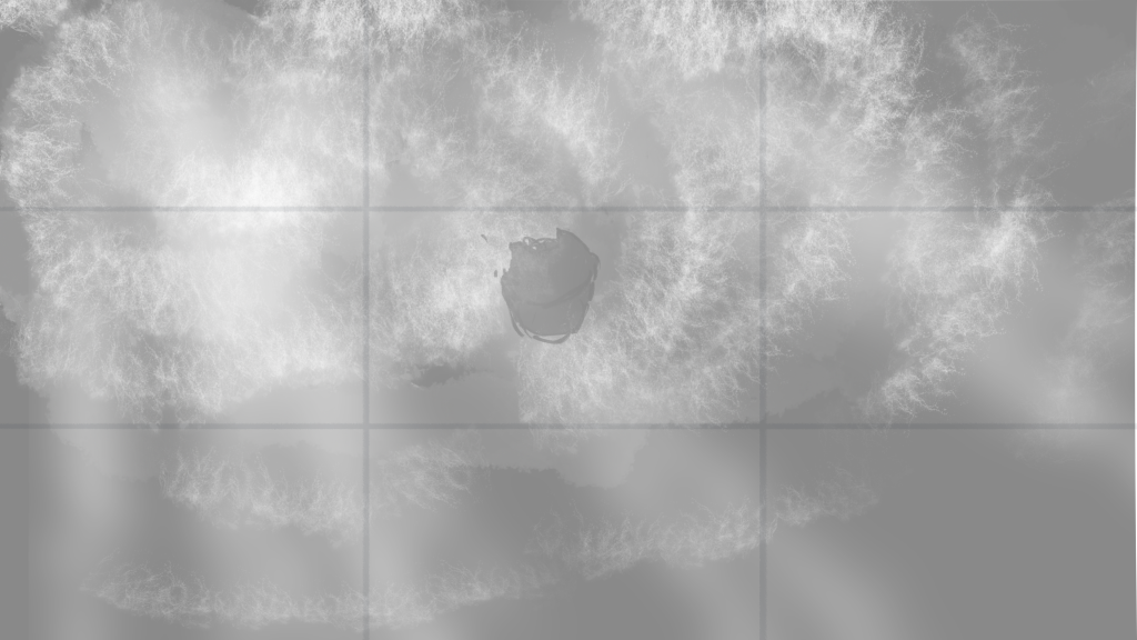 The most thing I considered during drawing the background is perspective. To make the background world convincing, and considering all the characters have different heights, I kept my attention on the horizon–“All things go through the horizon have the same height.” (I found it’s very easy to betray that law…)