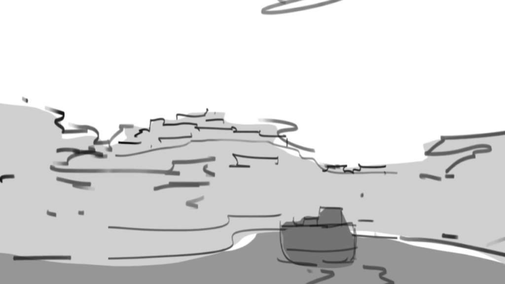 After talking with John, some of the background will be modeled by CGI, I’ll start from the shot 2 background, and refine some storyboard.