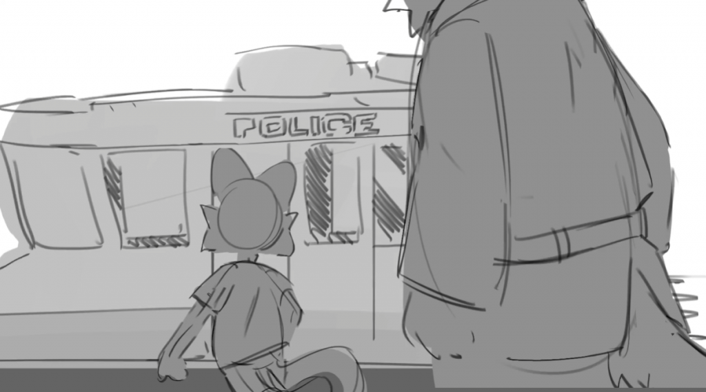 Also I think there may need one shot to reveal that it’s the police who chases the cat. John thinks for not adding too much on the background, he can add a up shot to reveal.