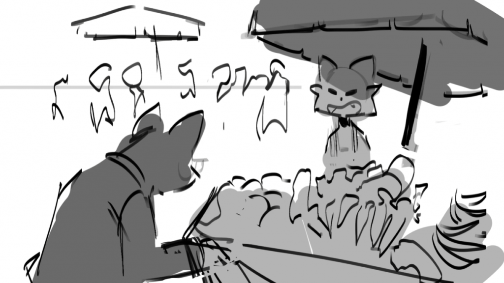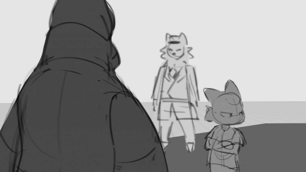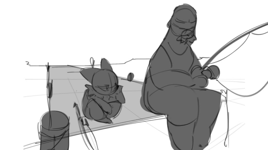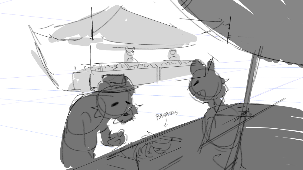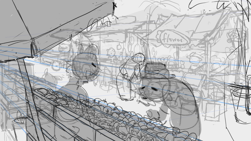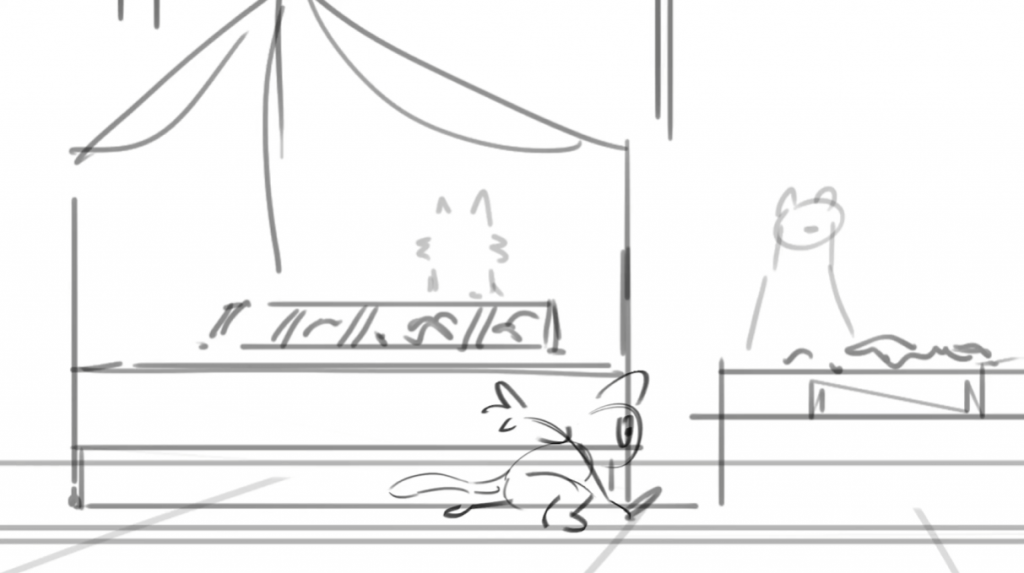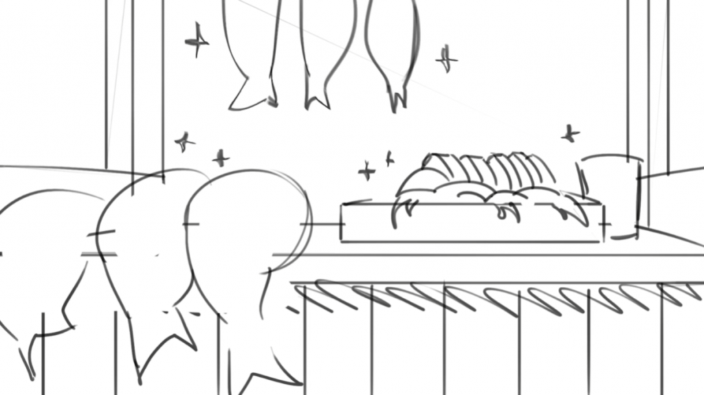 John said he needs the background design, layouts, and some inbetweening on selected shots, so I’ll start from the background design.