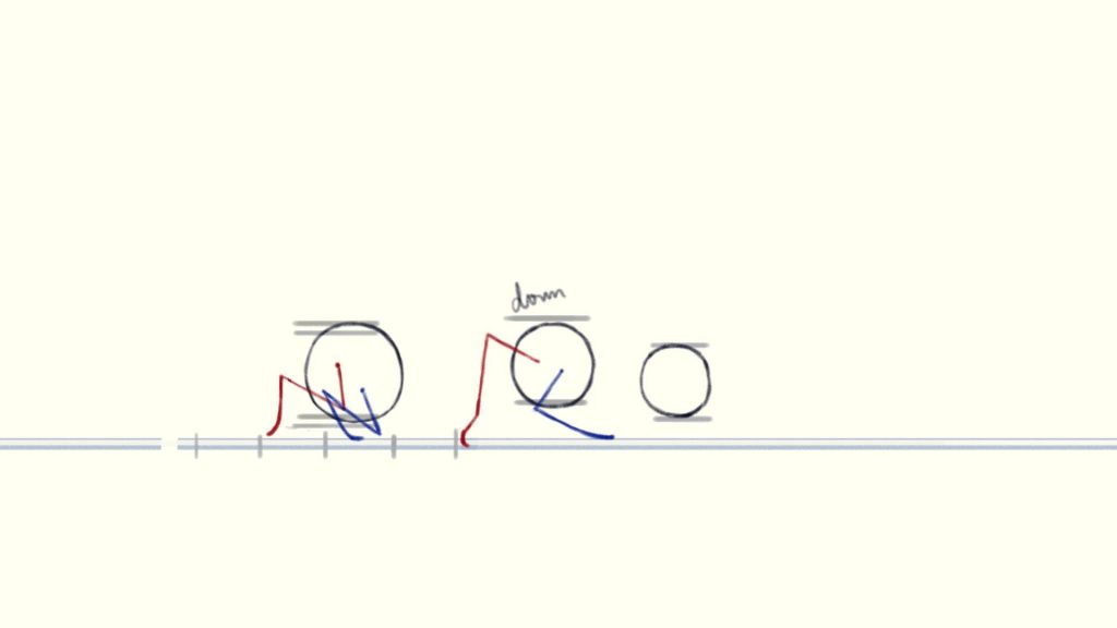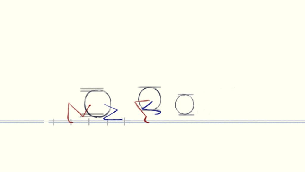 Another way to draw “squash and stretch” is to divide the ribcage and pelvis into separate parts. In the frame(or the next frame) where each part reaches its highest point, move it righter, and in the frame(or the next frame) where it reaches its lowest point, move it lefter.