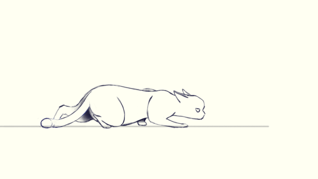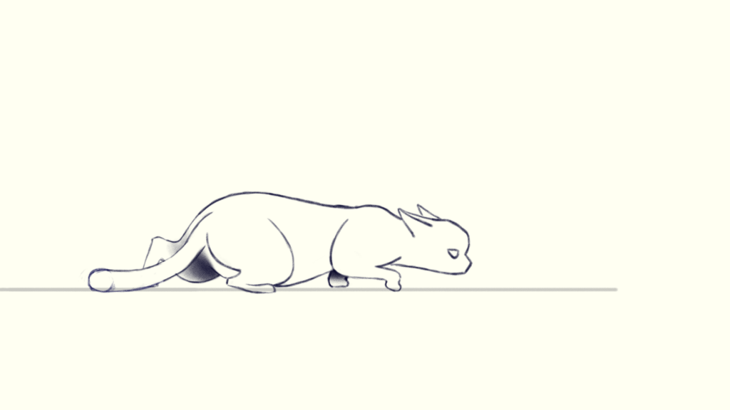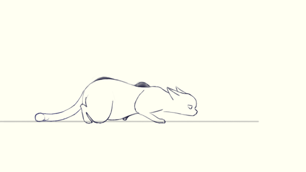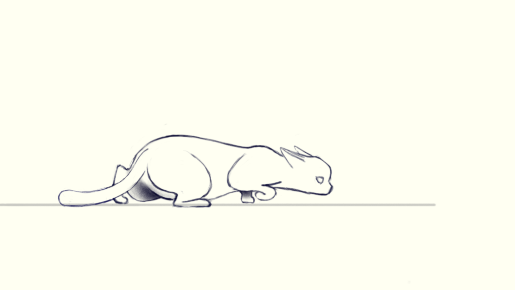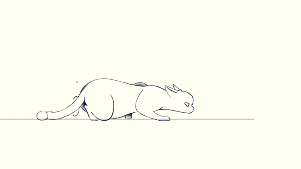 The last thing is to add details like ears and tail. Just follow how the head or pelvis move and add a little bit of lay back, then you will get a tiptoeing cat!
